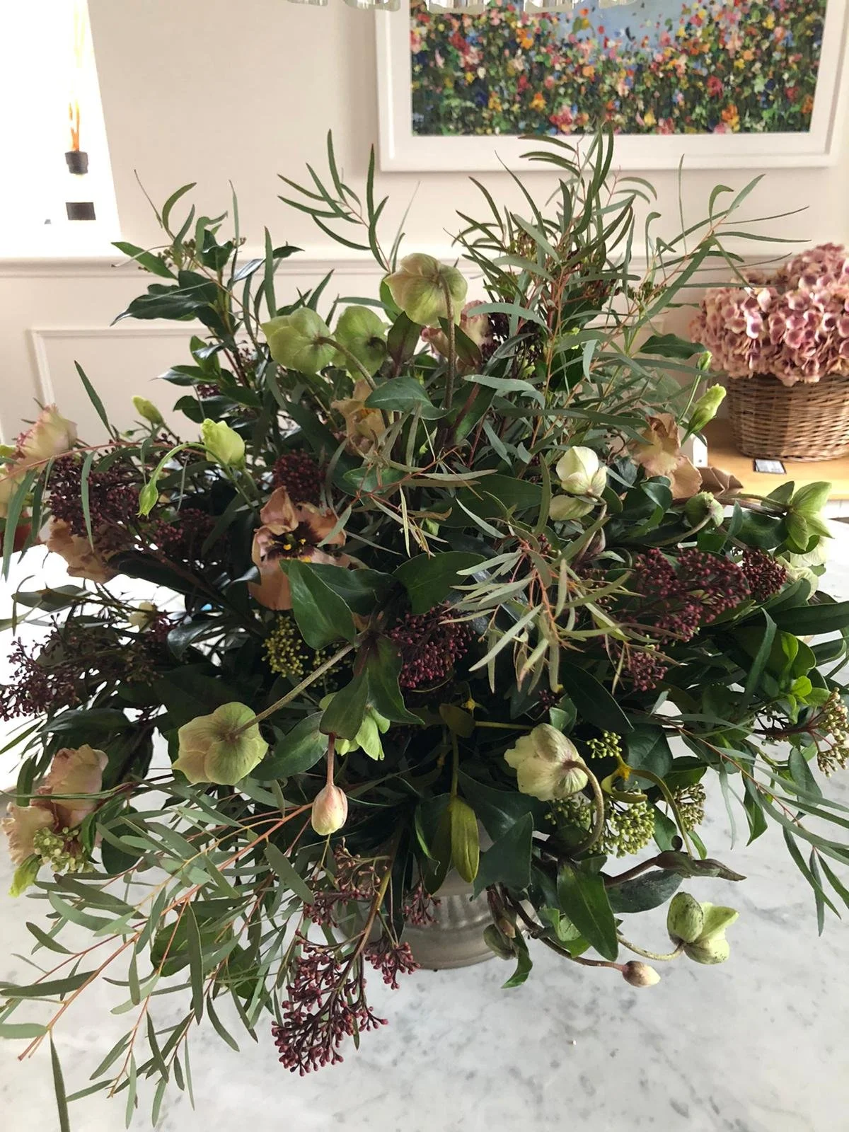 It may be the new year, but just while Christmas is a not so distant memory we wanted to share a few images of this full house decoration. Bespoke staircase in fresh foliage, table arrangement incorporating hellebore, skimmia and eucalyptus and front door wreath to welcome you in.